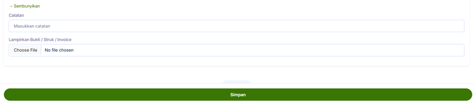 Selanjutnya Anda bisa klik Detail. Untuk isi catatan dan Lampirkan bukti. Lalu Anda bisa klik tambah untuk menambahkan transaksi penginputan dan bisa klik Simpan.