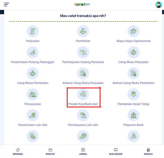 INPUT TRANSAKSI HARIAN PINDAH KAS BANK DARI DI SATSETBOS