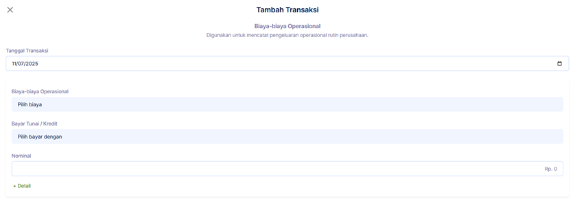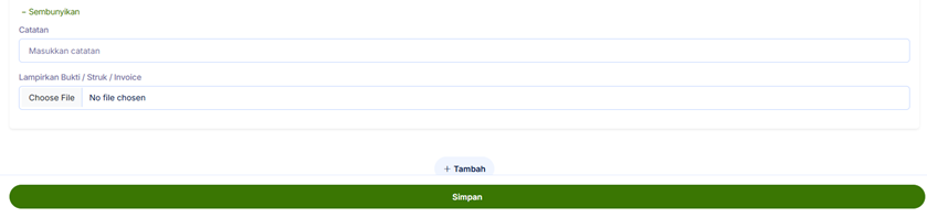 Selanjutnya Anda bisa klik Detail. Untuk isi catatan dan Lampirkan bukti. Lalu Anda bisa klik tambah untuk menambahkan transaksi penginputan dan bisa klik Simpan.