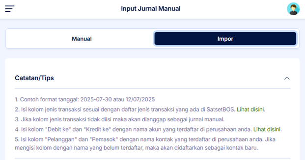 Selanjutnya kalian bisa melihat catatan/tips untuk mengimpor transaksi.