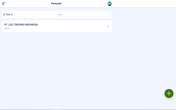 3. Setelah di klik anda diperlihatkan Data Pemasok.