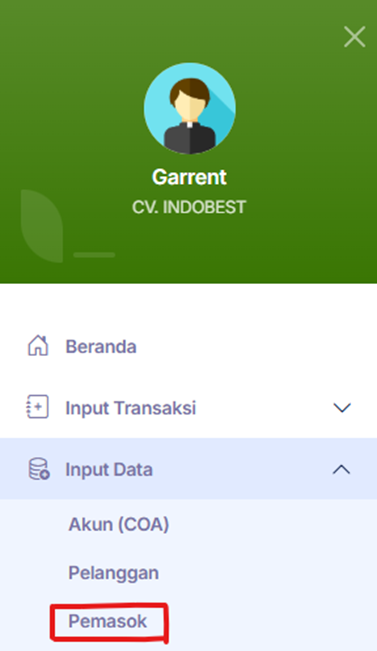 2. Klik Input Data, lalu klik Pemasok.