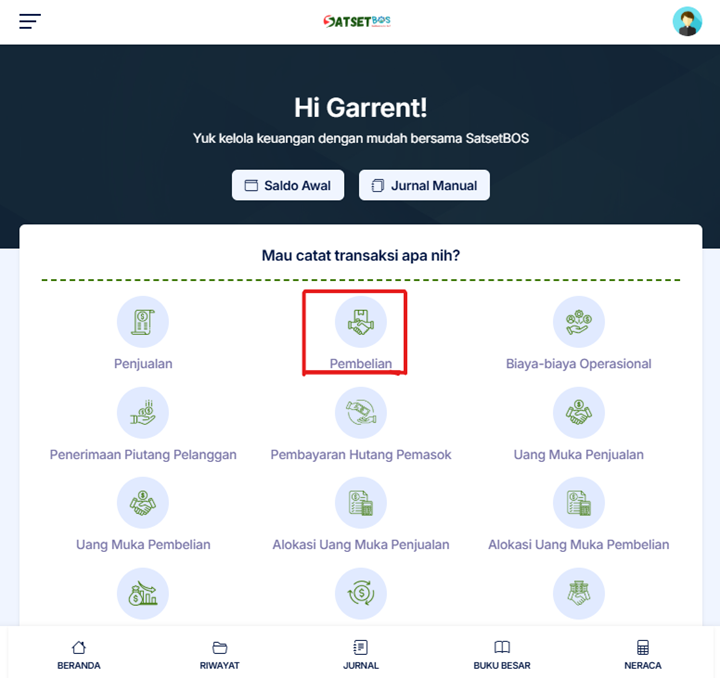 Dalam menjalankan bisnis, mencatat setiap transaksi pembelian sangat penting untuk mengetahui pengeluaran, utang usaha, dan kelancaran operasional. Aplikasi SatSetBos menyediakan fitur Menu Pembelian yang memungkinkan pengguna mencatat pembelian barang atau jasa dengan mudah, cepat, dan akurat.