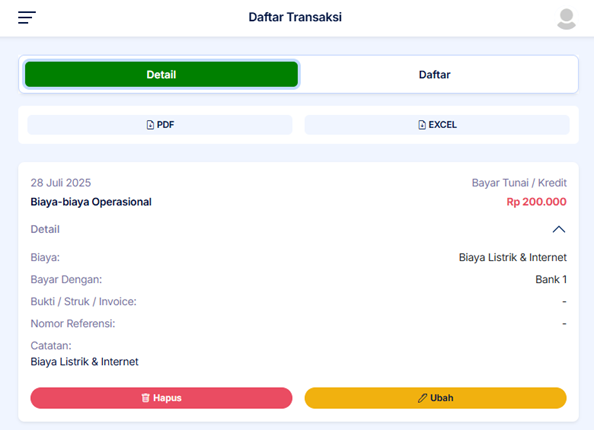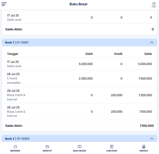 • Buku Besar – Rincian semua transaksi.