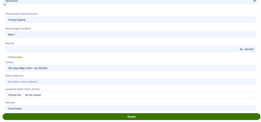 Beli 100 Gelas @Rp 2.000 = Rp 200.000 > Metode Kredit
