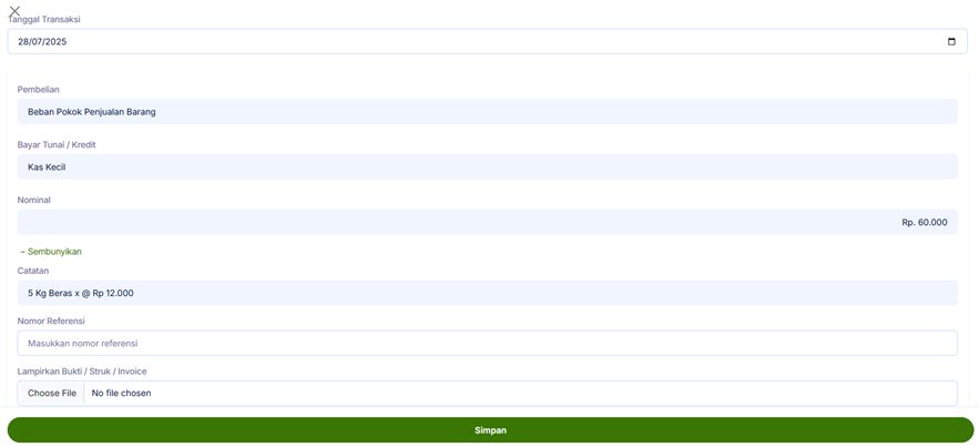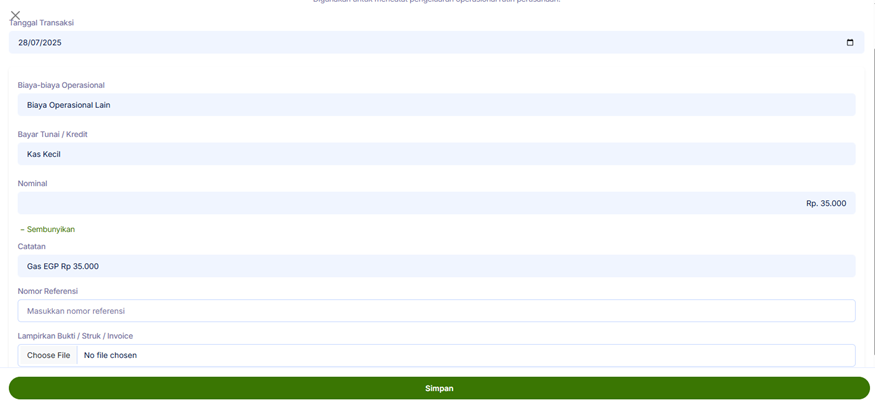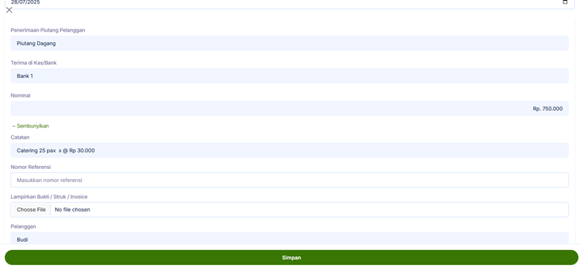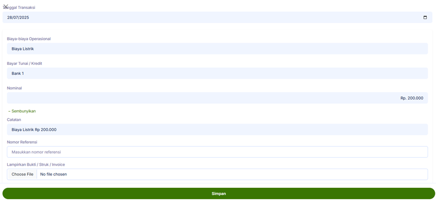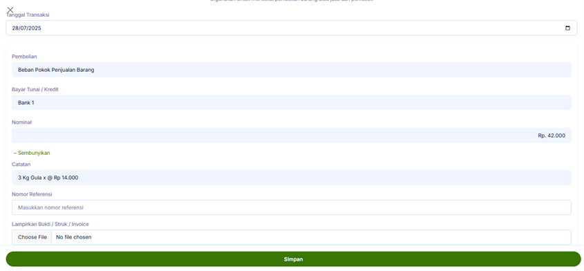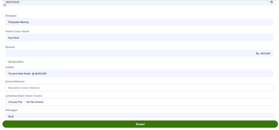 Berikut adalah simulasi lengkap untuk penginputan transaksi usaha F&B (Food & Beverage) di aplikasi SATSETBOS, dari setup awal hingga laporan keuangan otomatis: