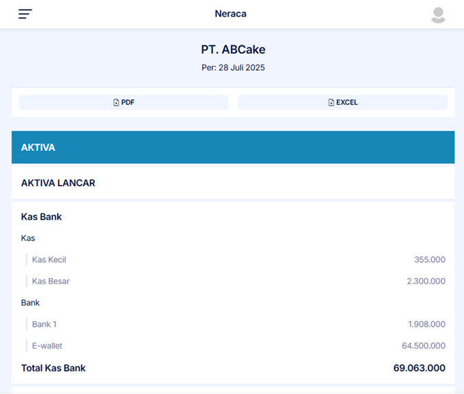Menu garis tiga kiri atas ada menu laporan yang bisa anda lihat :