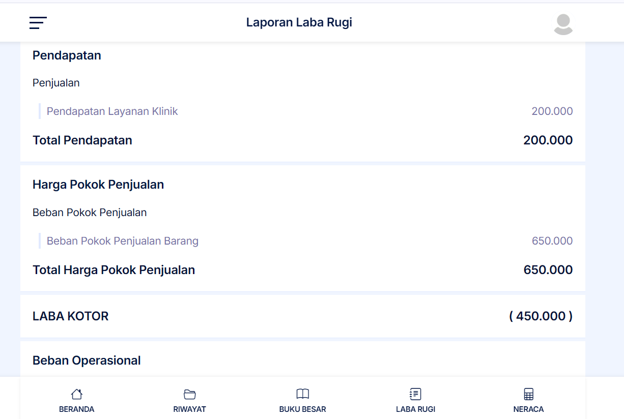• Laba Rugi - Ringkasan pendapatan & beban.