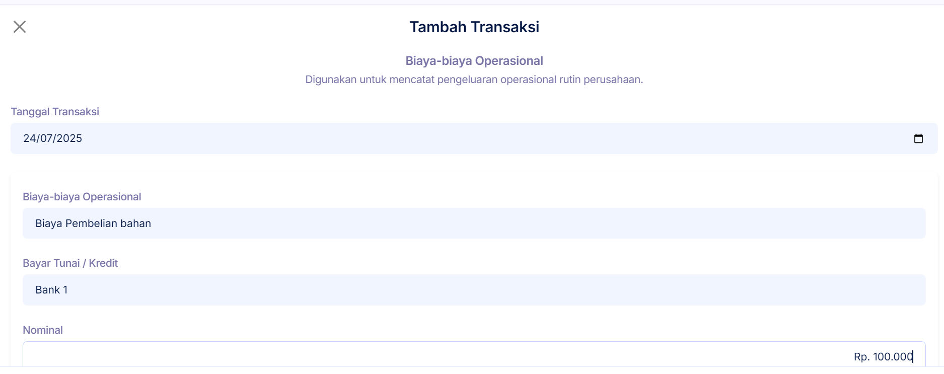 2) Pilih Biaya – Biaya Operasional : Biaya Pembelian Bahan