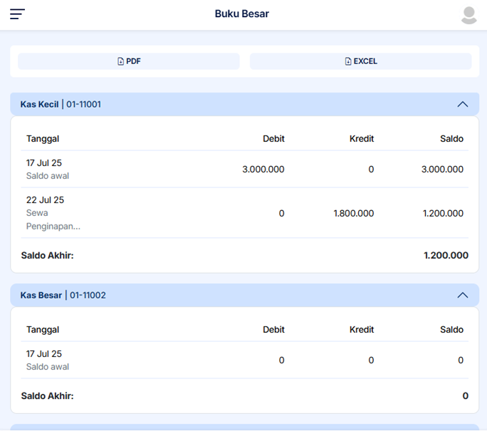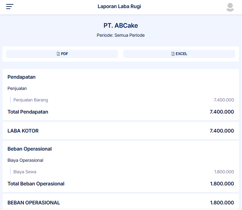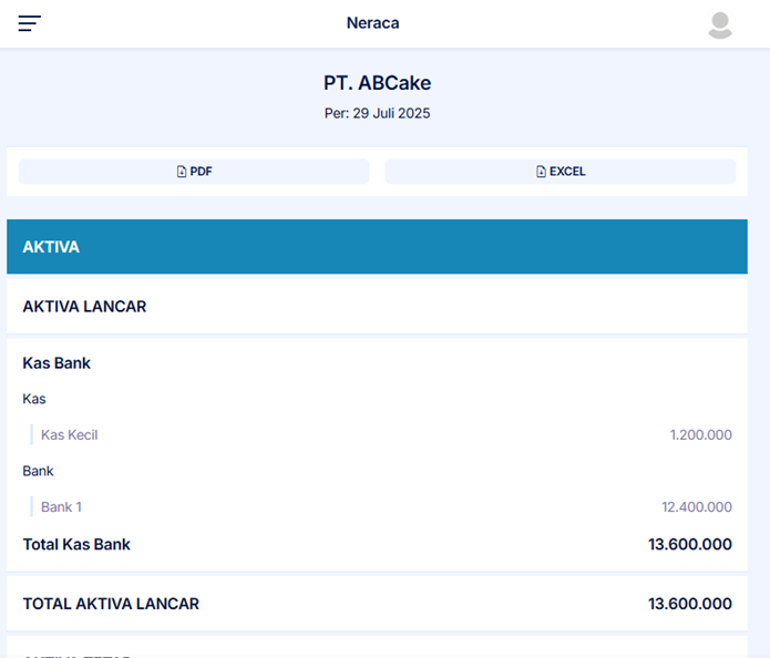 Menu garis tiga kiri atas ada menu laporan yang bisa anda lihat :
