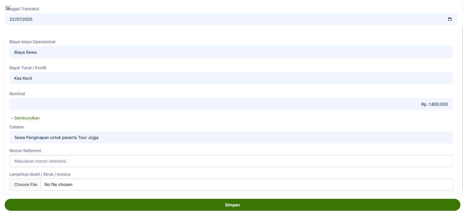 SATSETBOS adalah aplikasi pencatatan keuangan yang dirancang khusut untuk pelaku UMKM agar mudah mencatat pemasukan, pengeluaran dan menghasilkan laporan otomatis. Dalam simulasi ini, kita akan mempraktikkan cara mencatat transaksi usaha Tour & Travel secara efisien.